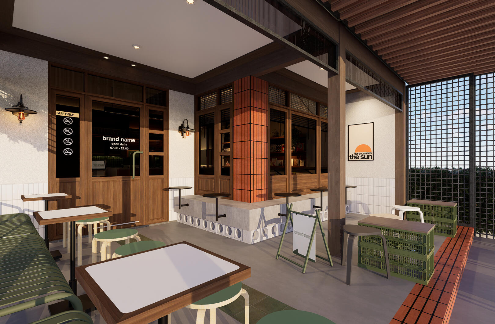 Narasi desain diperkaya oleh latar belakang keluarga pemilik, yang ingin menjadikan tempat ini sebagai ruang yang bisa menghubungkan seluruh generasi—baik muda maupun tua. Inspirasi diambil dari rumah nenek yang hangat, lengkap dengan kopi, makanan rumahan, dan suasana teras yang terbuka untuk siapa saja.