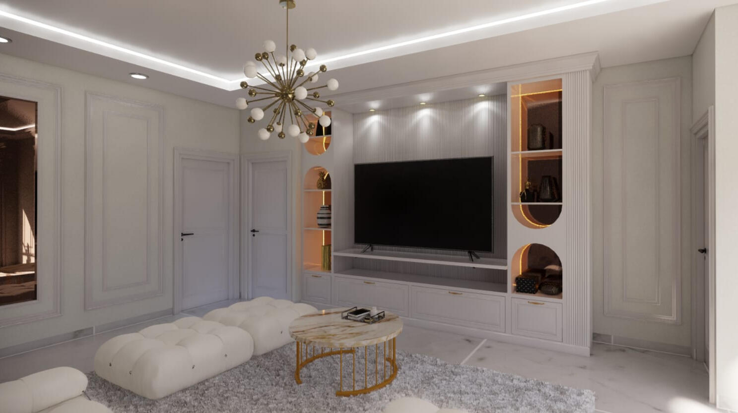 Keunikan desain yang kami hadirkan dalam proyek ini terletak pada sentuhan kongliong dan moulding yang kami terapkan, menciptakan