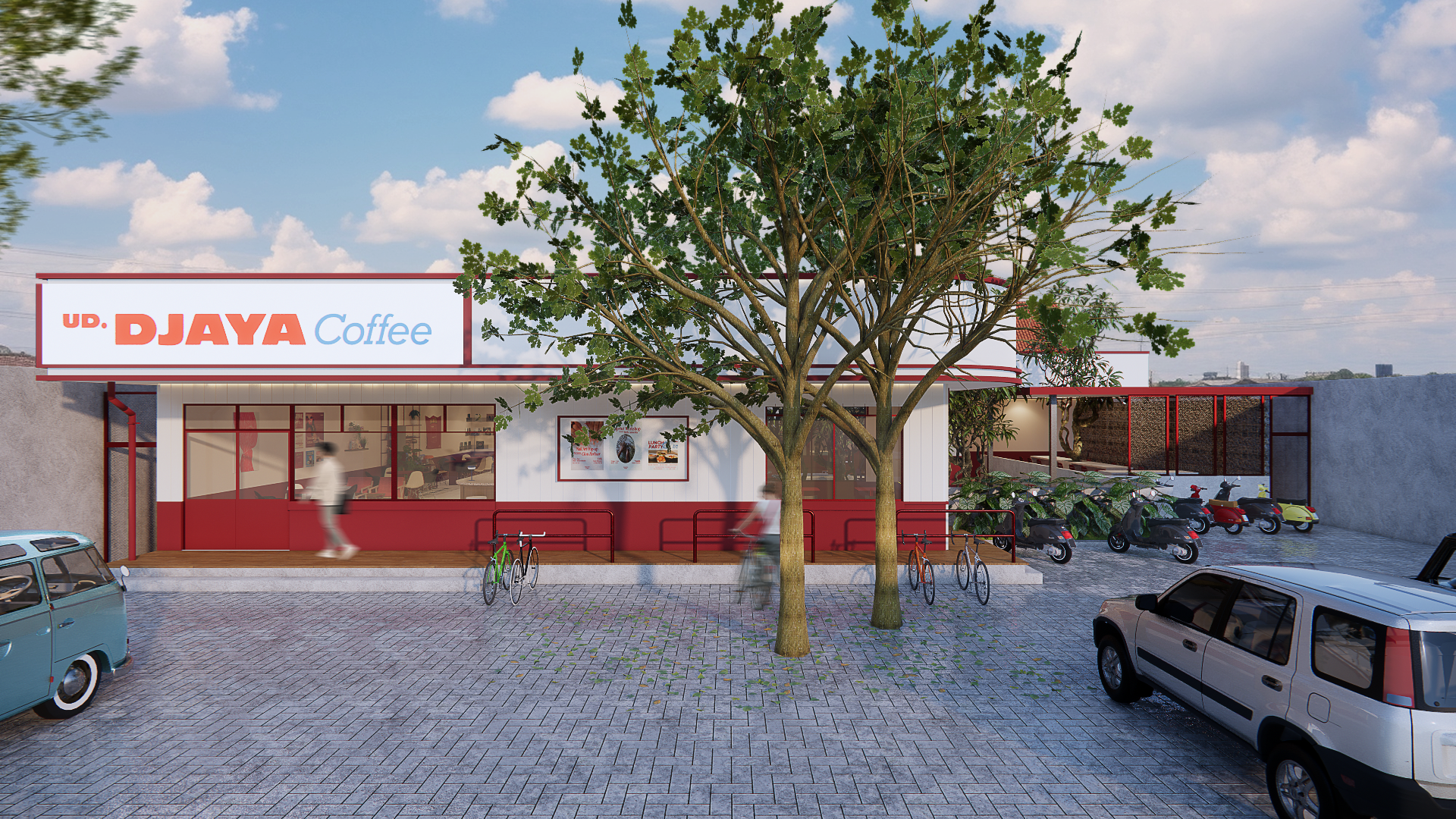Proyek UD Djaya yang berada di Yogyakarta ini merupakan proyek renovasi dari sebuah rumah disulap menjadi coffee house yang ikonik di Depok, Sleman. Dengan luas mencapai 600m2, proyek ini telah kami kerjakan dengan penuh dedikasi pada tahun 2024. Dalam proyek ini, kami merangkai konsep desain yang menghadirkan kembali pesona era 80an-90an dengan sentuhan modern yang segar. Berdasarkan keinginan utama klien kami, kami berusaha keras untuk memastikan bahwa fasad dan interior bangunan mampu merepresentasikan estetika yang khas dari era tersebut.